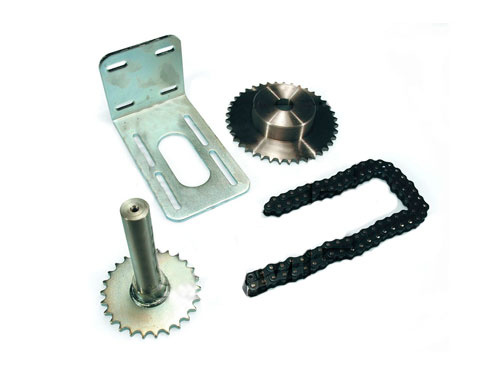 Передающая система для секционных ворот высотой более 5,5м. Система цепной передачи для секционных ворот (высотой более 5,5м) с валом и зубчатым колесом Z = 40 для полого вала, муфтой цепи 1/2” и анкер-болтами крепления к приводу.