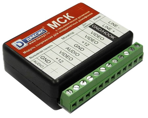 Даксис МСК - модуль сопряжения предназначен для подключения индивидуального видеодомофона к линии связи общеподъездного домофона с координатной системой адресации абонентов (Vizit, Cyfral, Eltis, Метаком), для приема вызовов от него и открывания подъездной двери с помощью стандартных функций видеодомофона. Помимо линии аудиодомофона с помощью модуля сопряжения можно подключить четырехпроводную вызывную видеопанель (для установки на этаж) и видеосигнал от подъездной видеокамеры.