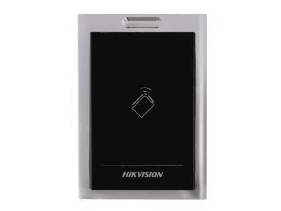 Считыватель карт Mifare Hikvision DS-K1101M предназначен для внешней установки, заключен в пластиковый корпус, отвечающий требованиям стандарта защиты от влаги и пыли IP64, что вкупе с рабочими температурами -40 °C… +70 °C позволяет круглый год использовать устройство на улице. Дистанция считывания — 30–50 мм, рабочая частота — 13.56 МГц. Модель базируется на 32-битном процессоре 1 ГГц, укомплектована LED индикатором (питание, статус соединения, статус идентификации), встроенным бипером. Предусмотрены самодиагностика и тампер. Интерфейсы: Wiegand 26/34, RS-485. Питание — DC 12 В, рабочий ток — максимум 0.5 А. При пиковых нагрузках устройство потребляет не более 6 Вт. Габариты — 132.092.320.5 мм, вес — 140 г. Сертификация — CE, FCC.