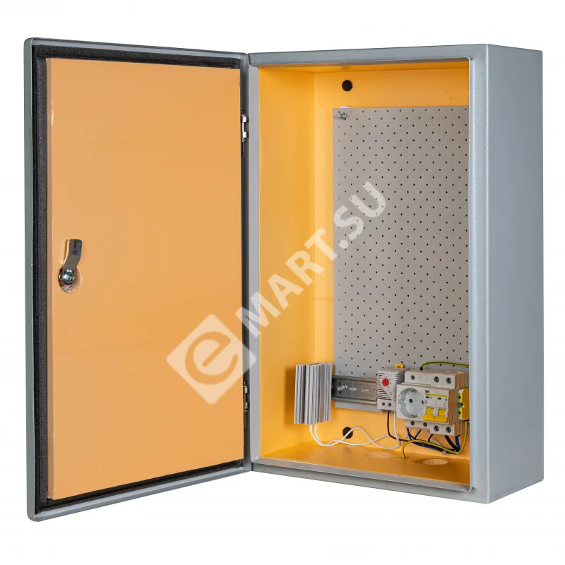 утеплитель из пенополистирола толщиной 20 мм, замок 1 шт, ключ 1 шт, монтажная плата 1шт, гермовводы 2шт, розетка 1 шт, автоматический выключатель 1шт, термореле 1шт,нагреватель мощностью в 75 Вт 1шт.