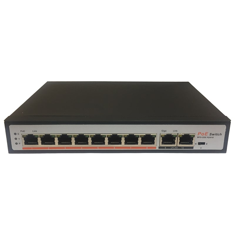 Hunter HN-POE2081 – неуправляемый коммутатор на 10 портов, 8 из которых с поддержкой технологии POE стандарта 802.3af/at (Type A) 100Мбит. Максимально поддерживаемая мощность подключаемых устройств составляет 30 Вт на каждый порт. Дополнительно присутствуют 2 uplink порта с максимальной скоростью подключения до 1000 Мбит: один для подключения видеорегистратора или другого видеозаписывающего устройства, другой для подключения к сети интернет-провайдера.