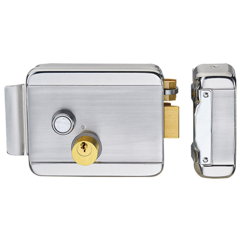 HN-RJ105B – накладной электромеханический замок с блокировкой кнопки. Выполнен из стали с никелированным покрытием, что допускает эксплуатацию замка не только в помещении, но и на улице. Замок является универсальным и может быть установлен на правосторонние и на левосторонние двери. Универсальность достигается благодаря специальной конструкции собачки и переворачиваемой защелке. Блокировка кнопки предотвращает несанкционированное открытие. В отличие от замков других производителей, изменение положения защелки производится без сложных манипуляций и без разбора корпуса.
