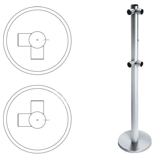 OXGARD ВЗР 2442.09.12 - Стойка ограждения с отверстием под фиксатор L-образная, 2 муфты справа передвижная предназначена для организации ограждений мобильных полуростовых. Стойка выполнена из шлифованной нержавеющей стали. Содержит 4 муфты.