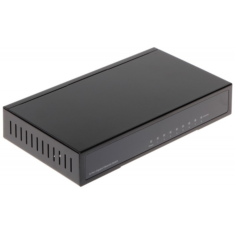 Dahua DH-PFSЗ008-8GT – 8 портовый коммутатор неуправляемый; 8*10/100/1000 Base-Т;Питание: DC 9В; Размеры: 186х106х33 мм
