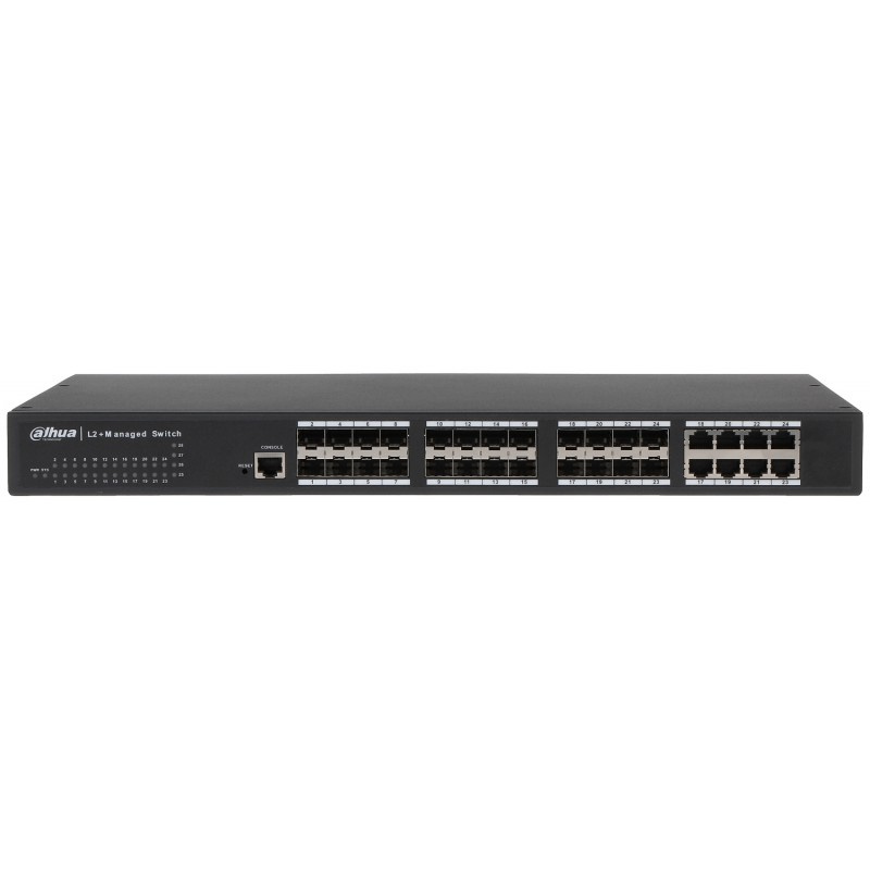 Dahua DH-PFS5924-24X - Управляемый коммутатор с поддержкой функций уровня L2+ оснащен расширенной инфраструктурой для производительной и безопасной передачи пакетов в сети. Укомплектован 16 гигабитными портами RJ-45 (Base-T) и восемью гигабитными combo-портами (1000BASE-T/SFP).