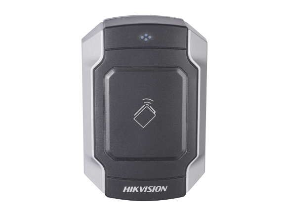 Считыватель карт Mifare Hikvision DS-K1104M поставляется в прочном (ABS + металл) вандалостойком (IK10) корпусе, защищенном от влаги и пыли согласно требованиям стандарта IP65, что в совокупности с рабочими температурами -40 °C… +70 °C позволяет использовать устройство на улице в любое время года. Дистанция считывания — 30–50 мм, рабочая частота — 13.56 МГц, интерфейсы — Wiegand 26/34, RS-485. Модель построена на 32-битном процессоре 1 ГГц с DIP-переключателем, укомплектована LED индикатором (питание, статус соединения, итог идентификации), встроенным бипером, тампером. В считыватель заложена функция самодиагностики и автоматического исправления ошибок путем отката до предшествующего обновлению состояния. Питание — DC 12 В, рабочий ток — 0.5 А. В режиме максимальных нагрузок считыватель потребляет не более 6 Вт. Габариты — 1187623 мм, вес — 520 г. Сертификация — CE, FCC.
