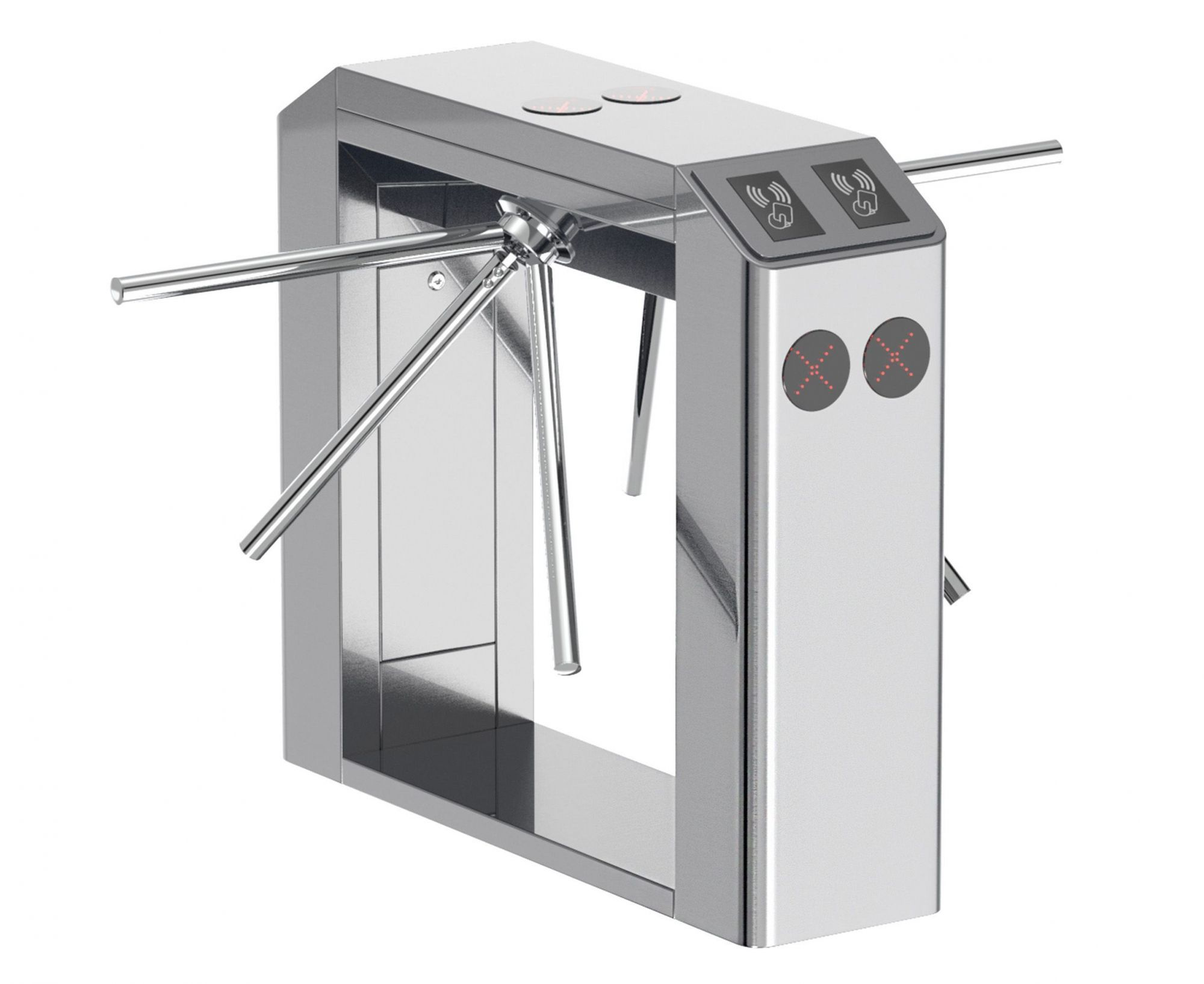БЛОКПОСТ ТМБ 1200 - Двухпроходной трипод может быть оснащен системой распознавания лиц, счетчиком количества проходов, аппаратным ключом, светофором и  пультом управления. В случае аварийной ситуации или сбоя питания срабатывает автоматическое опускание штанги, что гарантирует свободный выход при эвакуации. Турникет оборудован различными режимами пропускной системы контроллера. Есть возможность устанавливать одно- или двунаправленную функцию пропускной системы. Возможно интегрировать стороннее оборудование с использованием реле «сухой контакт».