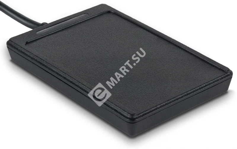 Считыватель не займет много места на рабочем столе, т.к. размер устройства чуть больше стандартной пластиковой карты - 64х98х8 мм. USB-кабель длиной 140см. позволит расположить считыватель так, как это удобно оператору на рабочем столе.