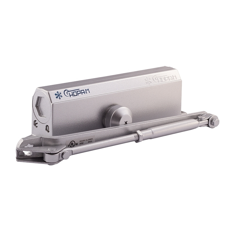 Модель 5S – доводчик дверной морозостойкий, предназначен для установки на входные металлические и другие тяжёлые двери (весом от 120 до 160 кг). Скорость закрывания двери при установке может быть отрегулирована в диапазонах от 180˚ до 18˚ и от 18˚ до 0˚ при помощи винтов на корпусе доводчика.