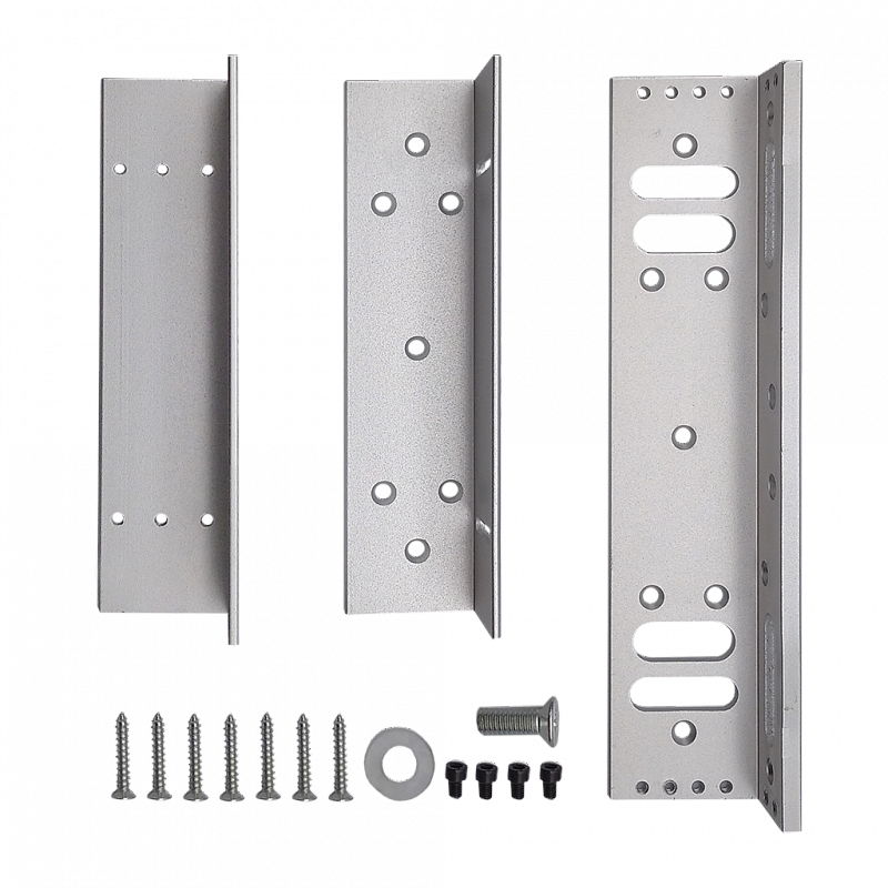 Комплект креплений для установки электромагнитного замка ST-ZLA350-1, ZL-образное крепление для электромагнитных замков предназначено для крепления электромагнитных замков на двери, открывающиеся внутрь,для электромагнитных замков с силой удержания 350 кг.Материал креплений – алюминий.