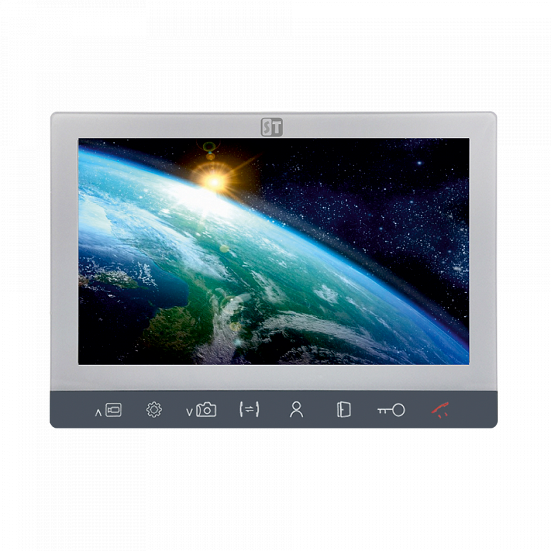 ST-M200/10 (S/SD) БЕЛЫЙ, Дисплей: 10” TFT LCD, цветной, Разрешение: 1024*600, Поддерживаемые стандарты видео: CVBS/TVI/CVI/AHD(720Р/1080P), Интерком: Да, Режим «не беспокоить»: Да, Запись фото/видео: Да, Слот под SD карту: Да (до 128 Гб(класс ? 10)), Количество мелодий звонка : 10, Автоответчик: Да(с SD карт.), Функция фоторамки: Да(с SD карт.), Возможности подключения: До 2х вызывных панелей, до 2х видеокамер,до 6и мониторов*, до 2х аудитрубок, Напряжение питания: АС 100-240В (встроенный БП 12V1A), Способ монтажа : Накладной (монтажная пластина), Рабочая температура : -10°С...+60°С, Мах. коммутируемые ток и напряжение для замка (ворота): 60V/40A, Пластик, 250*182*23 мм