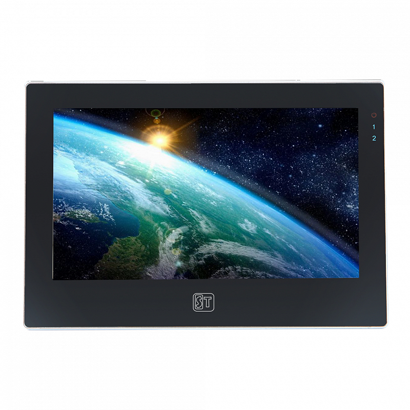 ST-M202/7 (TS/SD) ЧЕРНЫЙ, Дисплей: 7” TFT LCD, цветной, сенсорный, Разрешение: 1024*600, Поддерживаемые стандарты видео: CVBS/TVI/CVI/AHD(720Р/1080P), Интерком: Да, Режим «не беспокоить»: Да, Запись фото/видео: Да, Слот под SD карту: Да (до 128 Гб(класс ? 10)), Количество мелодий звонка : 10, Автоответчик: Да(с SD карт.), Функция фоторамки: Да(с SD карт.), Возможности подключения: До 2х вызывных панелей, до 2х видеокамер,до 6и мониторов*, Напряжение питания: АС 100-240В (встроенный БП 12V1A), Способ монтажа : Накладной (монтажная пластина), Рабочая температура : -10°С...+60°С, Мах. коммутируемые ток и напряжение для замка (ворота): 60V/40A, Пластик, 185х130х23мм