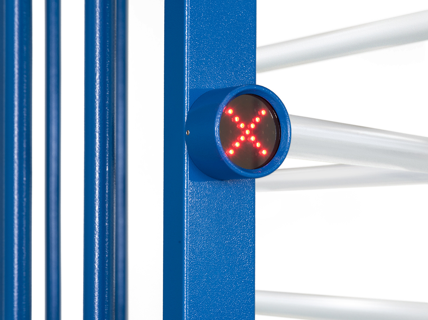 Турникет снабжен встроенными световыми индикаторами разрешения и запрещения прохода со сверхъяркими светодиодами. Есть возможность подключения дополнительных выносных световых индикаторов.