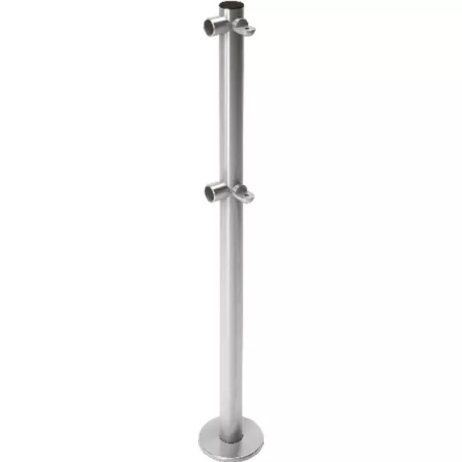 Стойка ограждения L-образная с 2-мя полупетлями под поворотную створку или секцию и 2 муфты слева, образуя угол 90°