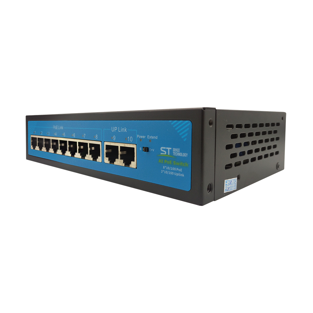 Источник питания ST-S84POE (2M/96W/A), Switch POE 8-ми портовый для обеспечения проводных сетей напряжением 48В, защита от КЗ, Extend 250м., VLAN, PoE порты: 8 х (10/100 Мбит/с), UpLink порты: 2 х (10/100 Мбит/с), Max.пропускная сп-ть: 100 Мбит/канал, Uвых: 48 (±10%), Р(ном) каждый порт (Вт): 12 Вт, Р(макс) каждый порт (Вт): 30 Вт, Р(сумм) общая (Вт): 96 Вт, Тип РоЕ: А, Коммутационная способность (Гбит/с): 1,6 Гбит/с, Extend - режим работы с увеличением дальности передачи до 250м VLAN изоляция РоЕ портов, Система охлаждения: пассивная, Металл, Температура эксплуатации: От -45°C до +55°C, Габаритные размеры ИП: 270x170x44 мм