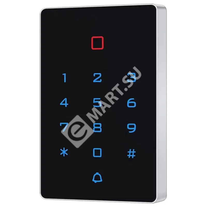 Сенсорная кодовая панель со считывателем и контроллером карт EM. Емкость памяти 2000 пользователей. Режимы: карта + код / карта или код / только карта. Wiegand-26. Подсветка цифр. Питание 12-24В DC. Температура эксплуатации -45..+60°С. Пластиковый копус IP65. Накладной монтаж. Габаритные размеры 114х75х16мм.