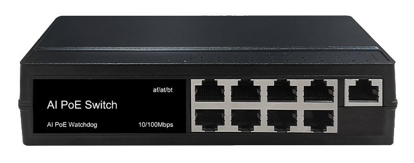 PoE коммутатор 8x100 Мбит/с PoE портов (6 портов 802.3af/at, максимальная мощность PoE 30Вт на порт, 2 порта 802.3af/at/bt, максимальная мощность PoE 60Вт на порт) + 100 Мбит/с порт Uplink, общий бюджет PoE 120 Вт, автоматический PoE watchdog, автоматический выбор длины линии и скорости работы (до 130м скорость 100Мбит/с, от 130м до 250м скорость 10Мбит/с), встроенный блок питания, грозозащита и защита от статического электричества, от -30°С до +60°С.