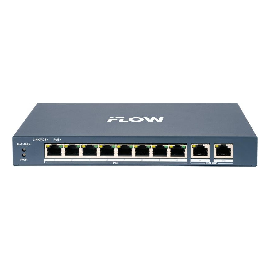 Смарт-управляемый; 8 RJ45 10/100M PoE с грозозащитой 6кВ; 2 1000М Ethernet порт; 802.3af/at, бюджет PoE 60Вт; поддержка режима передачи до 300м, 10Мб/с, CAT6; пропускная способность 5.6Гб/с; визуализированная топология управления, контроль статуса сети, уведомление тревог в реальном времени, контроль и обзор устройств видеонаблюдения