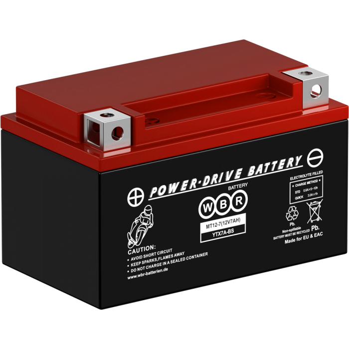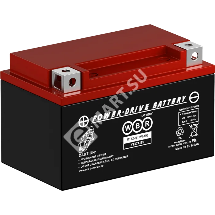 Аккумулятор WBR МТ12-7 - герметизированная, выполненная по технологии AGM, необслуживаемая (MF) стартерная мотоциклетная свинцово-кислотная аккумуляторная батарея. Обладает высоким качеством и надежностью. Она предназначена для запуска двигателя мотоциклов, скутеров, гидроциклов, квадроциклов, снегоходов и мотовездеходов. Батарея соответствует техническим характеристикам и является аналогом мотоциклетных аккумуляторных батарей YUASA модели YTX7A-BS.
