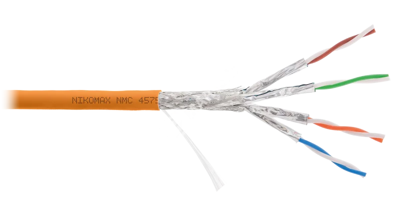 Кабель NIKOMAX S/FTP 4 пары, Кат.7a (Класс Fa), тест по ISO/IEC, 1000МГц, одножильный, BC (чистая медь), 23AWG (0,58мм), полимерный материал нг(А)-HF, внутренний, оранжевый, 500м - гарантия: 5 лет /15 лет системная