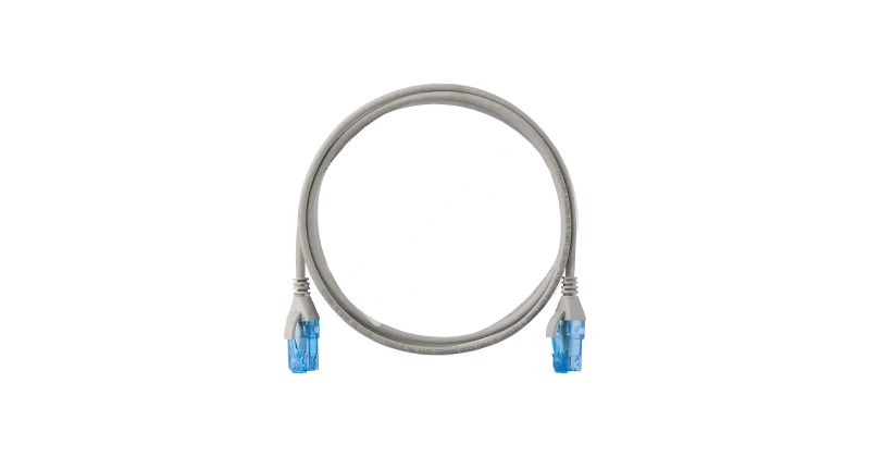 Коммутационный шнур NIKOMAX Slim Line U/UTP 4 пары, Кат.6 (Класс E), 250МГц, 2хRJ45/8P8C, T568B, заливной, с защитой защелки, многожильный, BC (чистая медь), 28AWG (7х0,127мм), LSZH нг(А)-HFLTx, серый, 2м