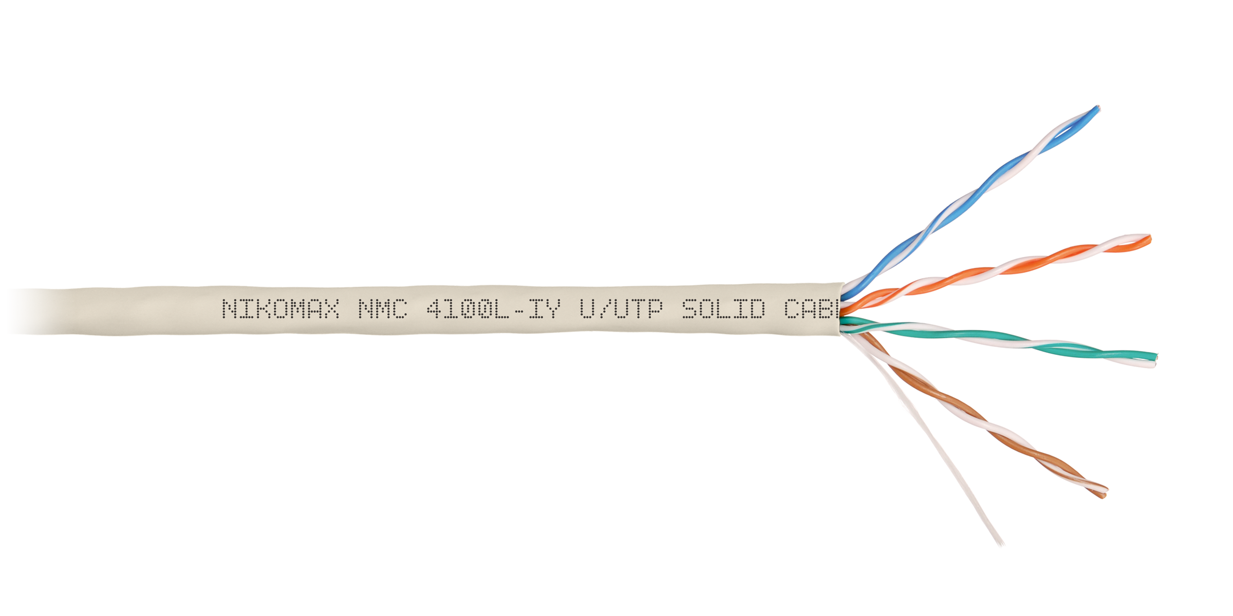 Кабель NIKOMAX U/UTP 4 пары, Кат.5e (Класс D), тест по ISO/IEC, 100МГц, одножильный, BC (чистая медь), 24AWG (0,51мм), полимерный материал нг(А)-LSLTx, внутренний, светло-серый, 305м - гарантия: 5 лет / 15 лет системная