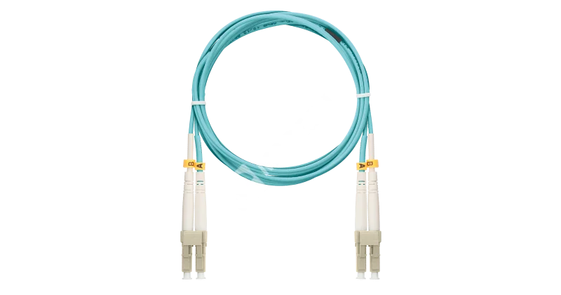 Шнур NIKOMAX волоконно-оптический, соединительный, многомодовый 50/125мкм, стандарта OM3, LC/UPC-LC/UPC, двойной, полимерный материал нг(A)-HF, 2мм, аква, 1м