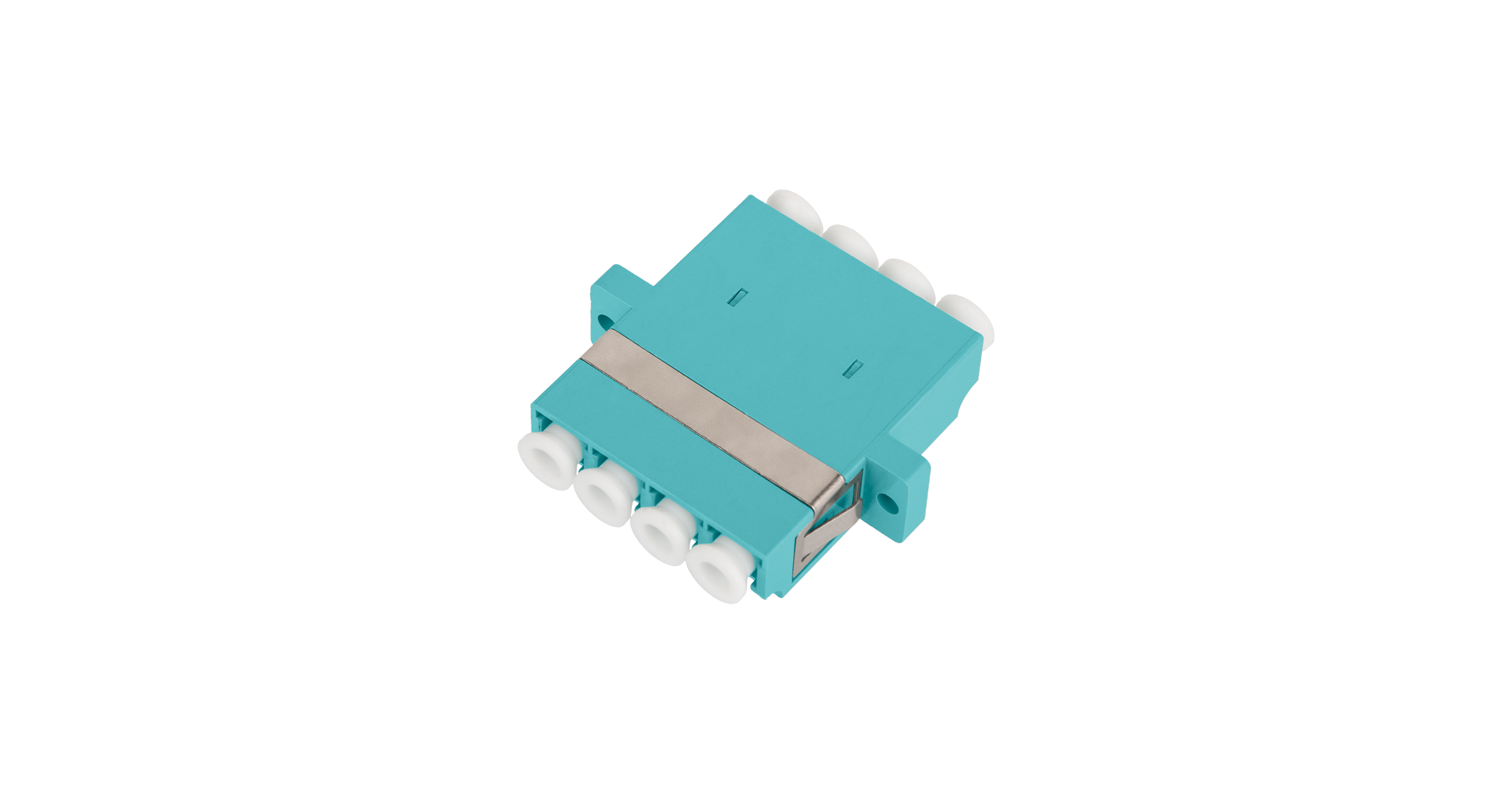 Адаптер NIKOMAX волоконно-оптический, соединительный, многомодовый, стандарта OM3, LC/UPC-LC/UPC, квадро, пластиковый, без шторки, с фланцами, аква, уп-ка 2шт.