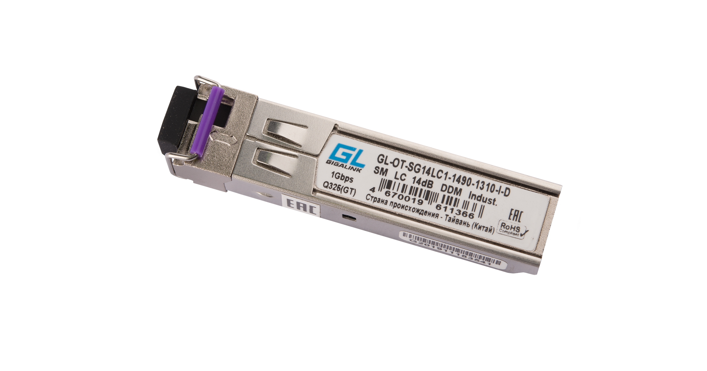 Модуль NIKOMAX SFP, 1.25 Гбит/с, WDM, 1 ОВ, SM, 1xLC, Tx:1490/Rx:1310 нм, DDM, 14 дБ (до 20 км), -40 +85 °С