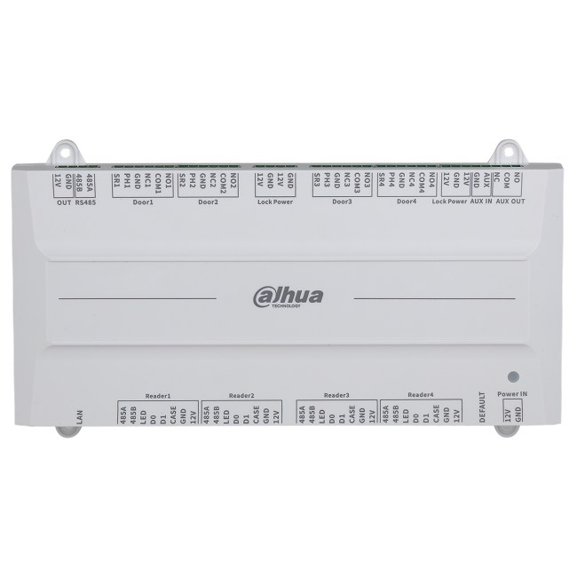 > Подает питание на 4 замка (12 В, 1.2 А) и 4 считывателя карт (12 В, 500 мА) одновременно. Адаптер питания должен поддерживать необходимые характеристики питания.