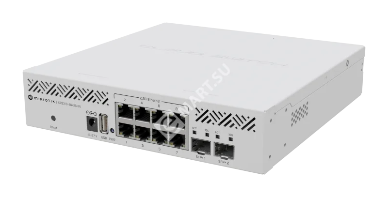 CRS310-8G+2S+IN — продвинутый L3-коммутатор с функциями маршрутизатора от MikroTik, обладающий процессором 98DX226S 800 МГц архитектуры ARM 32bit с 256 Мб RAM и 32 Мб Flash-памяти.