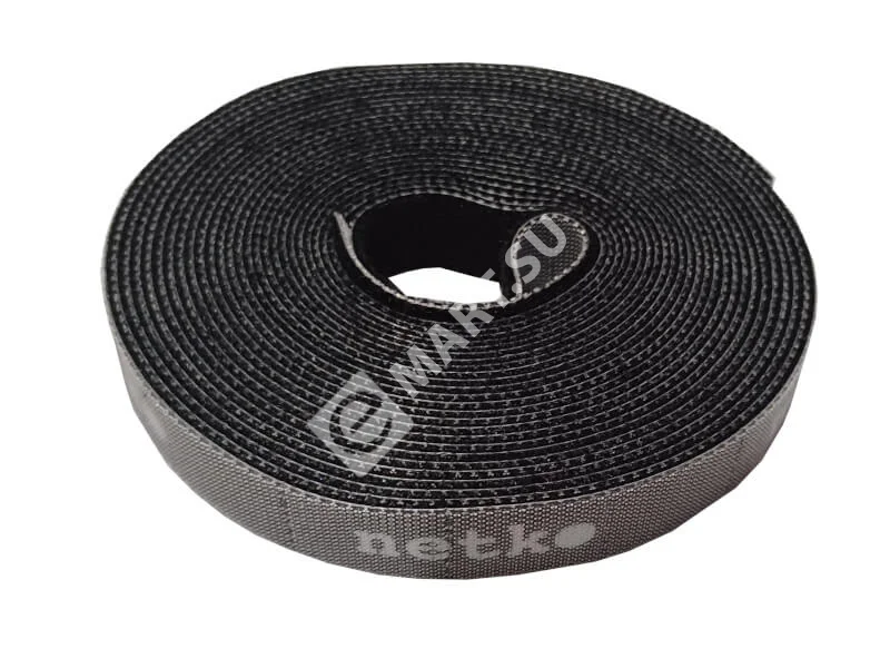 Netko Лента-липучка многоразовая 14,5мм*5м, с насечками для отрыва (каждые 2 см), черная Optima