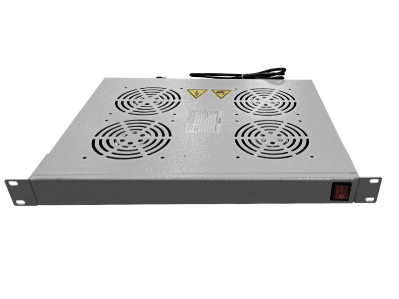 Полка вентиляторная 19", 1U/4 вентилятора, с кабелем, серая Netko