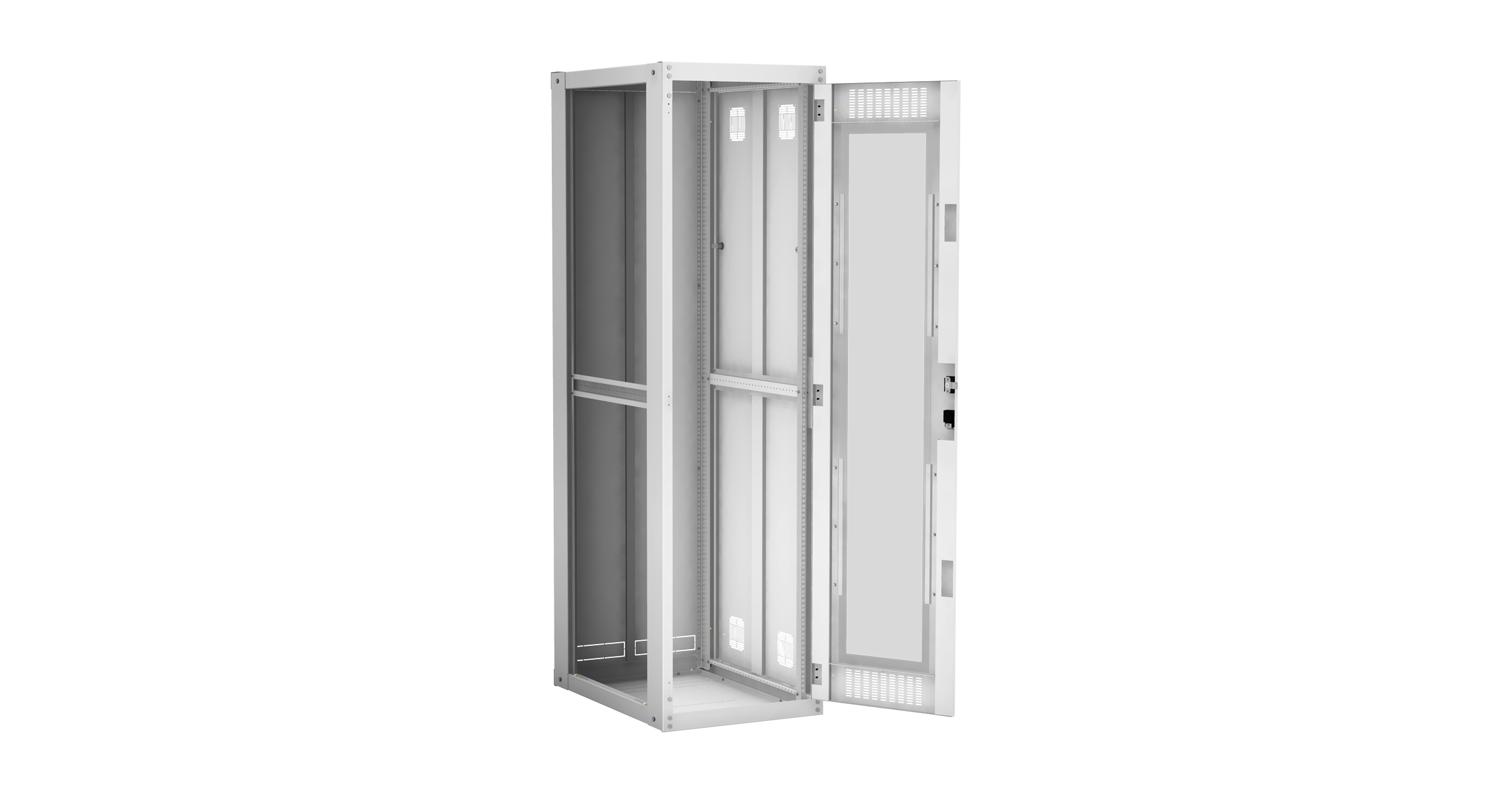 Напольный шкаф NETLAN 19", 42U, стеклянная дверь, цельнометаллические стенки, Ш600хВ1996хГ800мм, в разобранном виде, серый
