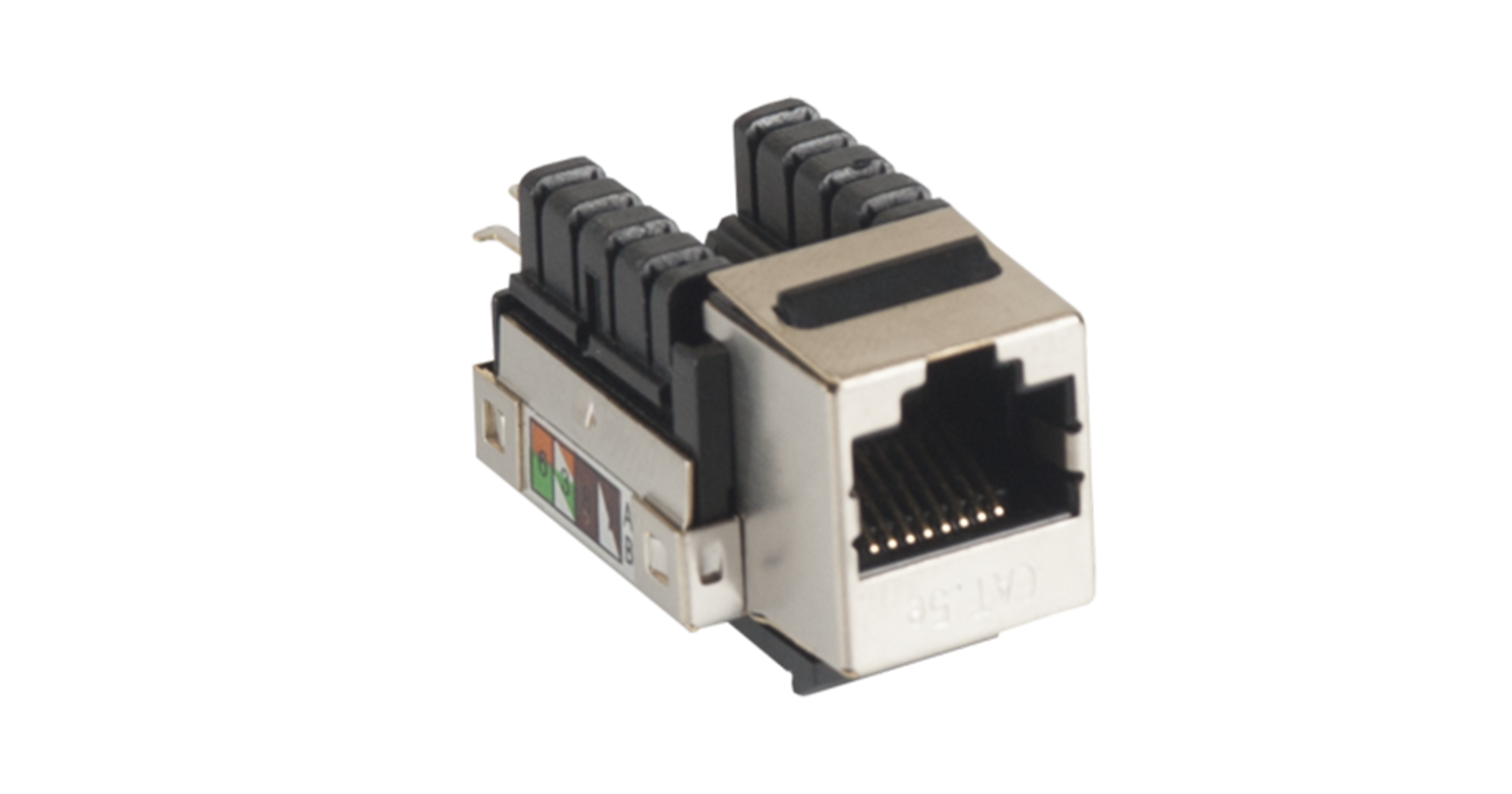 Модуль-вставка NETLAN типа Keystone, Кат.5e (Класс D), 100МГц, RJ45/8P8C, 110/KRONE, T568A/B, экранированный, металлик, уп-ка 10шт.