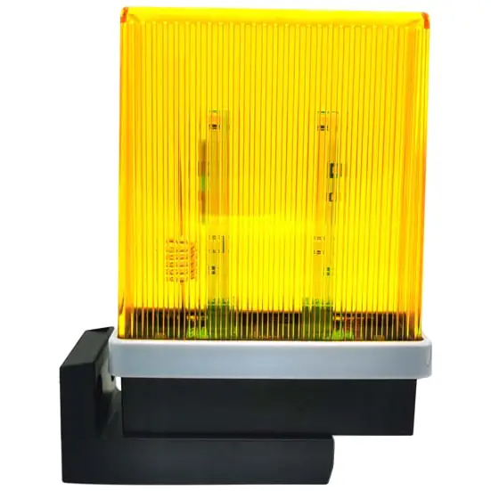 Сигнальная лампа желтого цвета, кронштейн для установки на передней или торцевой стороне стены, встроенная антення 433,92 МГц. Мигающий или постоянный режимы свечения; IP54; размеры: 15311748 мм; питание: 12В -265 В (AC/DC); рабочая температура: -30…+60 °C.