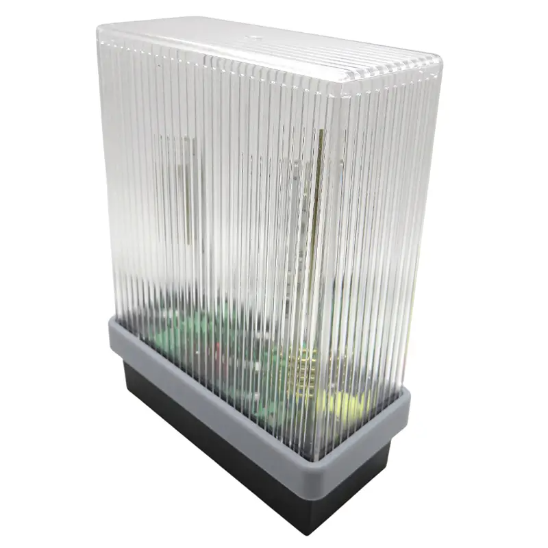 Режимы свечения: мигающий; постоянный Тип установки: кронштейн для передней или торцевой стороны стены Встроенная антенна: 433,92 МГц Потребляемая мощность: менее 3 Вт Материал корпуса: пластик Класс защиты: IP54 Цвет рассеивателя: прозрачный Размеры: 153×117×48 мм Питание: 12В-265В (AC/DC) Рабочая температура: -30…+60 °C