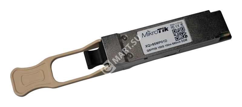 Модуль QSFP28 работает на расстояниях до 100 метров. Совместим с CCR2216, CRS504 или CRS518.